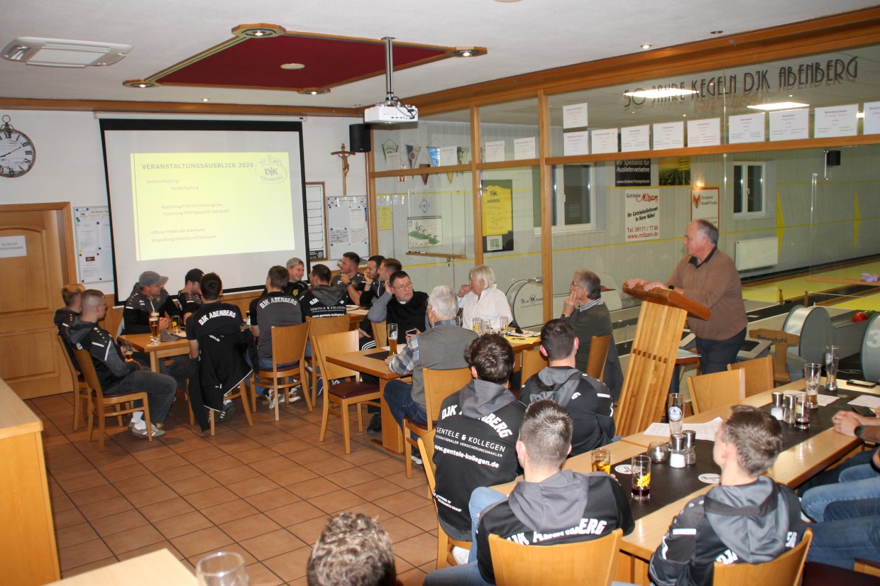 Zur diesjährigen Jahreshauptversammlung begrüßte der erste Vorsitzende der DJK Abenberg, Harald Kaiser den Ehrenvorsitzenden, Karlheinz Hiltl, Silvia Heuberger (Vizepräsidentin vom Diözesanverbad Eichstätt), den Geistlichen Beirat Stadtpfarrer Stefan Brand, alle Ehrenmitglieder, Stadträtinnen und Stadräte, sowie alle anwesenden Vereinsmitglieder in der vollbesetzten Kegelstube im DJK-Sportheim.