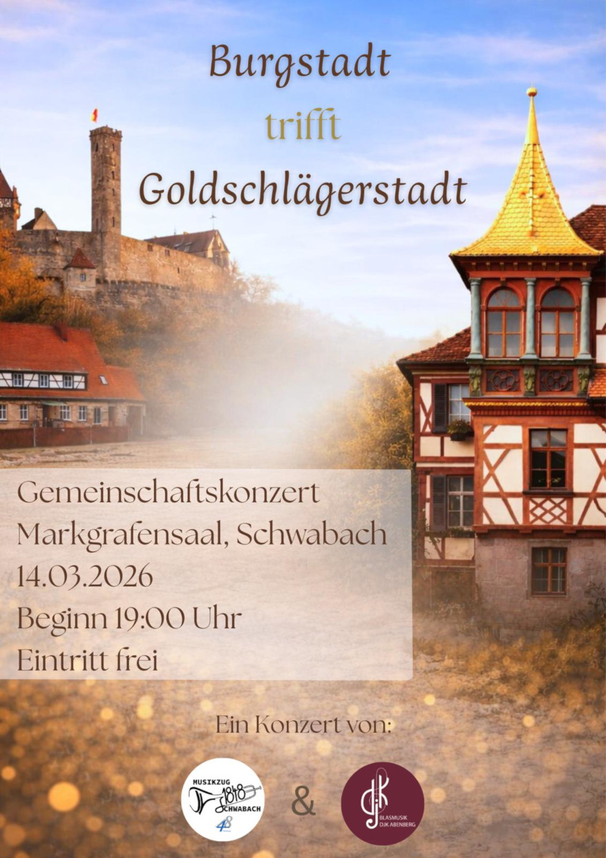 unter diesem Motto ergeht die herzliche Einladung zum Gemeinschaftskonzert vom Musikzug im TV 1848 Schwabach und der Blasmusik DJK Abenberg.